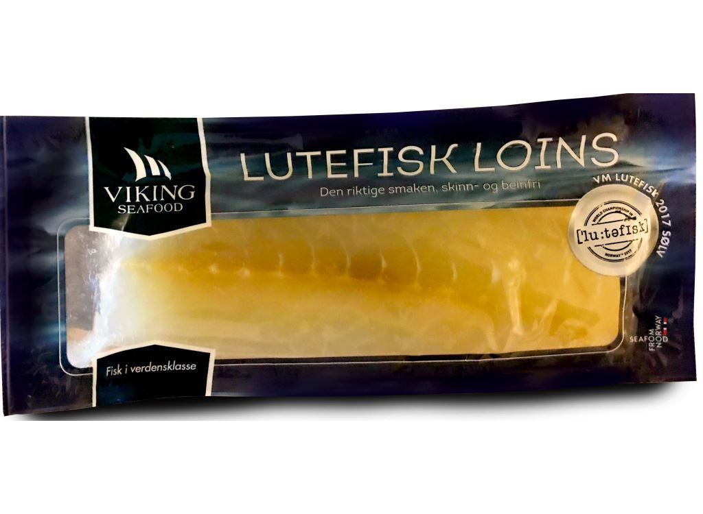 Årets lutefiskloins uten skinn og bein laget av ekte Tørrfisk. vacumert en og en bit i ca 750g’s loins. levert fersk med fryse-etiketter.